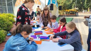 Активисты Молодежной палаты из района Коммунарка организуют занятие по изготовлению школьных принадлежностей